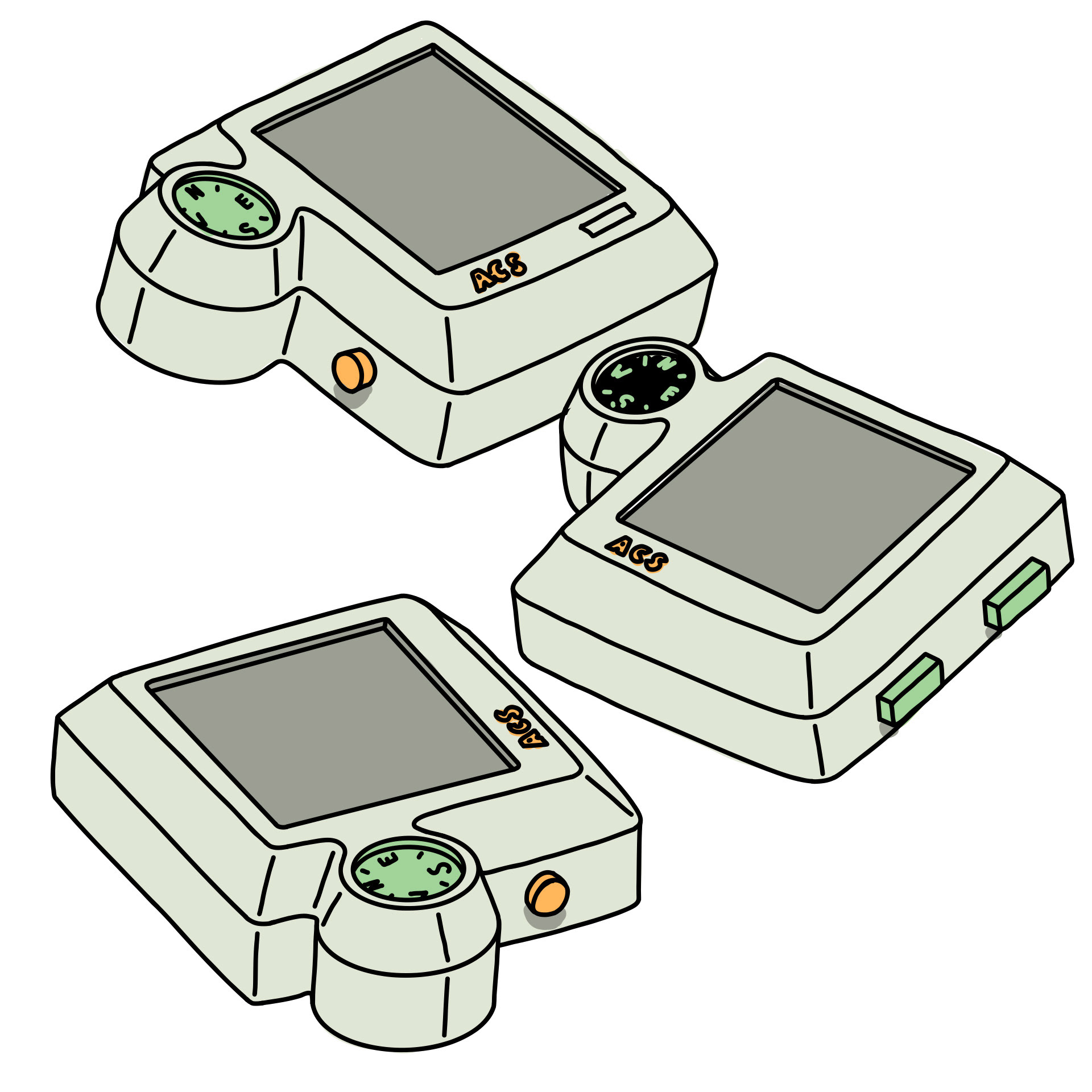 Made by 3D modelling and printing the body and band. A modern Casio was taken apart for the watch module which was used as the brains and interface for the watch. The compass module comes from a 1990s LL Bean keychain and was swapped into the watch for function.